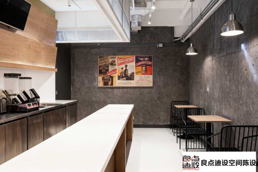 吧臺心機(jī):鐵銹色金屬臺面鑲嵌啞光木紋,比不銹鋼多了人情味,咖啡師操作時(shí)燈光一打,瞬間變身舞臺C位;