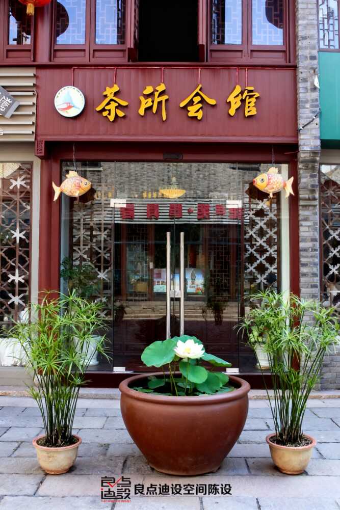 深紅色調(diào)打底,配上燙金大字"茶所會(huì)館"。傳統(tǒng)又不失氣勢(shì),路過都忍不住多看兩眼。門口那對(duì)魚形掛飾太靈動(dòng)了,寓意吉祥還超有辨識(shí)度。