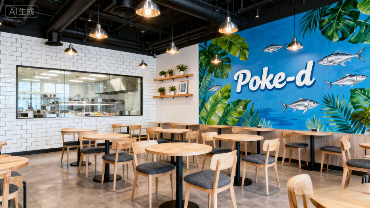 寶子們,今天挖到的這家Poke-d餐廳,***是「靠一面墻封神」的典范!誰(shuí)說(shuō)裝修非得大動(dòng)干戈?人家光靠一幅海洋風(fēng)壁畫(huà),就直接把氛圍感拉到夏威夷海邊了!走,帶你看看這套軟裝是怎么用巧思省大錢的~
