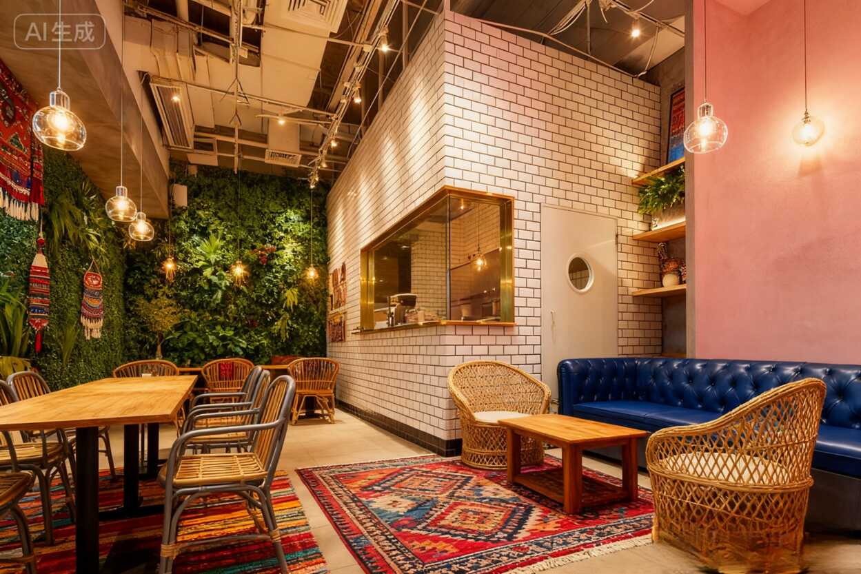 拿捏死了!這家餐廳軟裝設(shè)計的波西米亞混搭風(fēng),水泥墻+綠植居然這么絕!