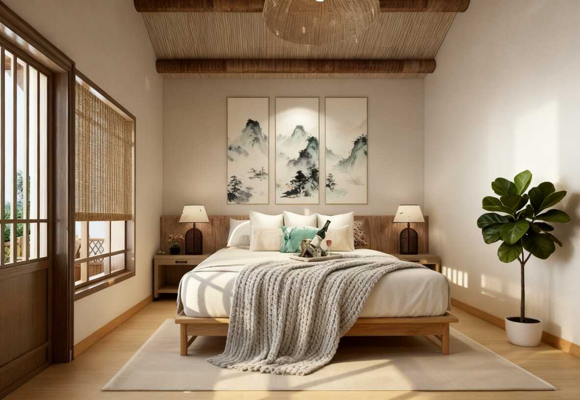 家具優(yōu)先選做舊原木或藤編材質(zhì),帶點(diǎn)歲月痕跡的更有侘寂感;