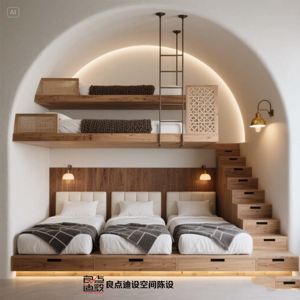 拱形民宿軟裝設(shè)計天花板!5㎡造雙人床+三鋪位的神仙操作
