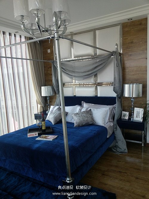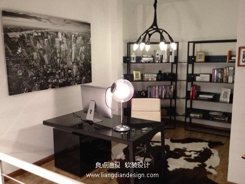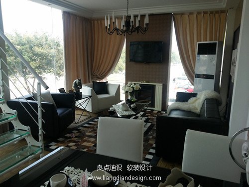 香城壹號(hào)LOFT本身是一個(gè)挑高空間,樓上樓下雙層生活空間,大的落地窗納入明媚陽(yáng)光,樓下起居室與餐廳連接一體,舒適自然,給居住者提供方便舒適的使用環(huán)境,在這樣的空間中我們運(yùn)用大膽時(shí)尚的設(shè)計(jì)風(fēng)格,餐廳區(qū)域是挑高的空間,窗簾形式也采用簡(jiǎn)潔的彩虹卷簾百葉的形式。抽象化的吊燈在空間給人帶來(lái)隨意自然的氛圍?,F(xiàn)代感皮面沙發(fā)和漸變拼花皮地毯都給人帶來(lái)時(shí)尚的氣息,二樓樓梯間的照片墻有歡迎客人與展示主人愛(ài)好與生活方式的作用,一個(gè)小桌配一個(gè)復(fù)古的皮沙發(fā),不論是暖暖的下午還是深夜都是一個(gè)品茶看書(shū)的好地方,貴族藍(lán)的床品和化妝臺(tái)搭配煙灰色紗幔,為臥室營(yíng)造出典雅浪漫的氣息,LOFT風(fēng)格創(chuàng)意裝飾就這樣被打造出來(lái)。