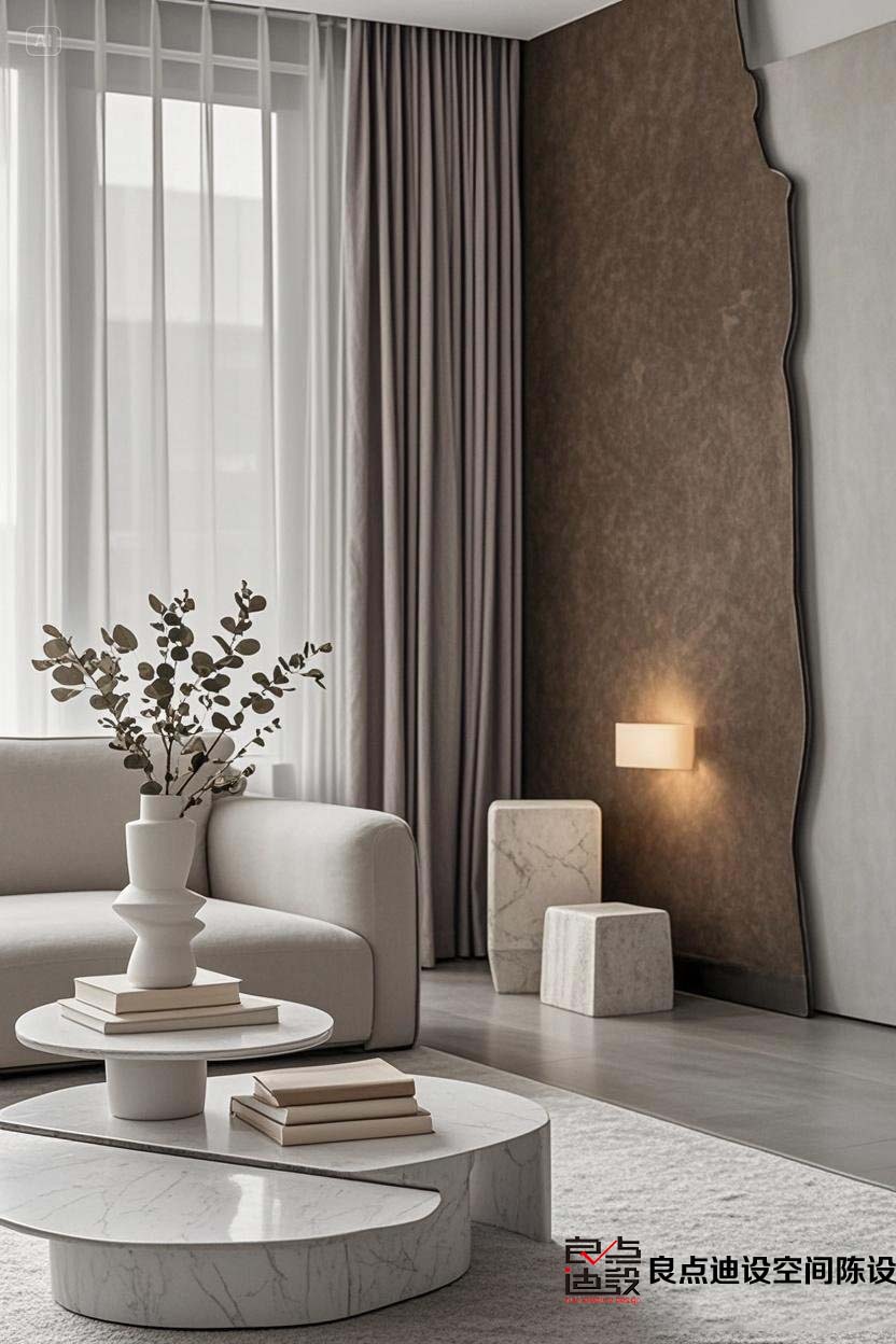 主體嘛,選那個淺色大沙發(fā),軟得跟棉花糖似的???,坐著發(fā)呆都爽翻天!搭個獨特的雙層大理石茶幾,設(shè)計感拉滿??——上層擺簡約花瓶和書本,下層收點雜七雜八的,實用又時髦。旁邊再丟兩個大理石小墩子,萌萌噠還能當(dāng)?shù)首?,空間利用超靈活。背景墻別瞎搞,一側(cè)用深棕色帶點不規(guī)則紋理??,另一側(cè)淺灰色就搞定,層次感咔咔立起來!窗簾雙層安排上,紗簾輕盈通風(fēng),陽光一透進(jìn)來溫馨感爆棚??,厚簾遮光睡得香。角落里的小壁燈,暖黃光一打,夜晚情調(diào)秒上線。整體配色簡簡單單,拒絕花里胡哨,主打個“躺平也不輸顏值”~