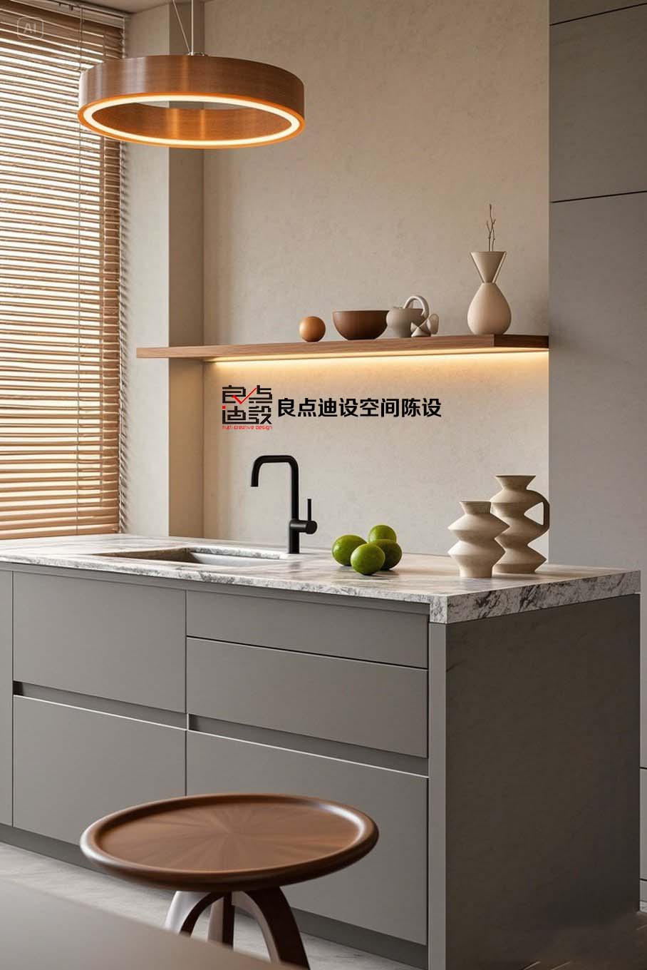 就看圖里這個地方,是不是一眼就被那個獨特的吊燈吸引了?這環(huán)形的設(shè)計,暖黃色的光一打,氛圍感直接拉滿有沒有!柔和的光線不僅能給空間增添溫馨感,還超適合晚上在這兒小酌一杯或者看看書呢。
