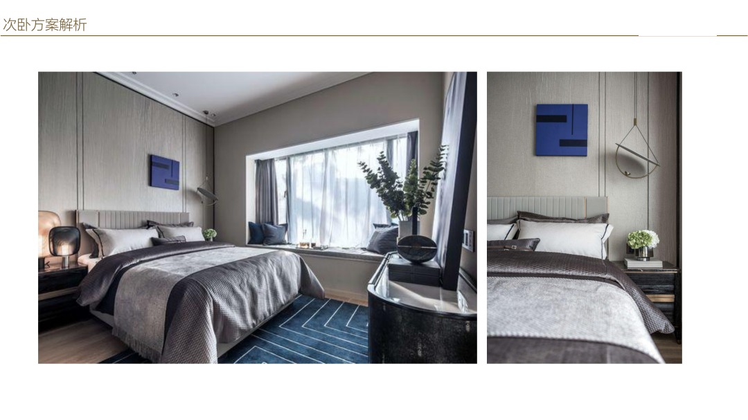 作為套房,將睡眠空間+衣帽收納空間+洗漱空間為一體,床尾有需要的話,可以增加抽屜柜收納跟梳妝臺(tái),兩個(gè)南次臥獨(dú)立的大衣柜能夠滿足客房的日常衣物收納。北次臥
