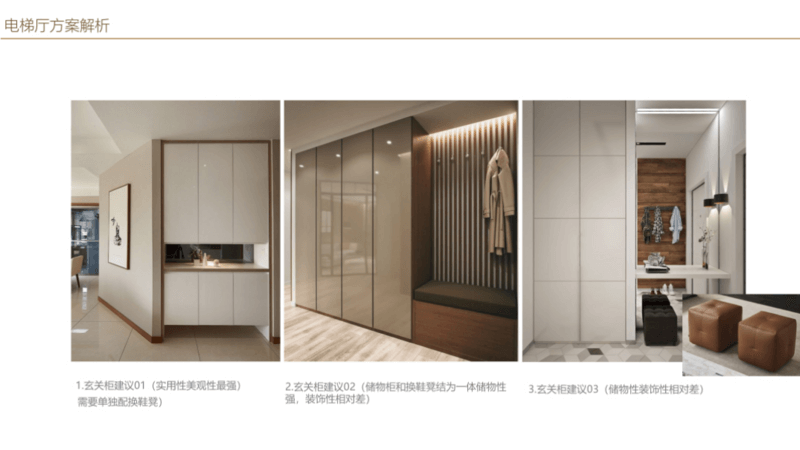換鞋凳 需要注意選擇的家具顏色風格應當與整體環(huán)境保持一致,換鞋凳下方可以設計為物品收納的空間,主要收納拖鞋、鞋刷或其他換鞋時需要的物品,因為這些是日常頻繁使用到的物品,宜采用明格存放;也可以以卡座的形式設計,高度根據(jù)身高和用物習慣去選擇。