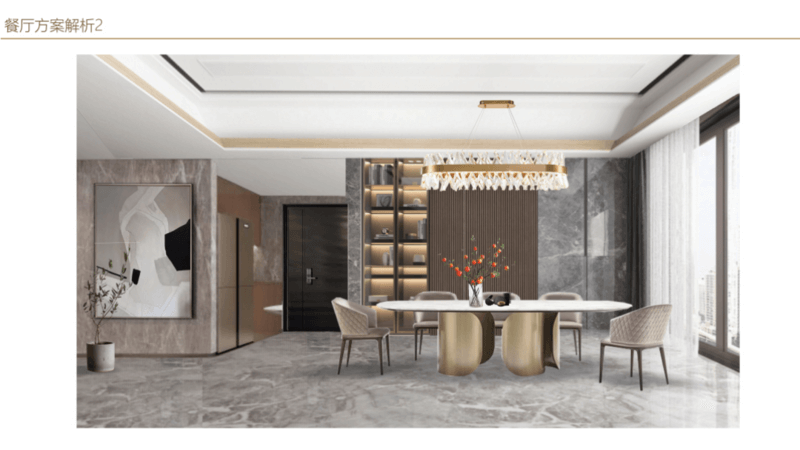 除了收納,餐邊柜還有一個重要作用就是增加空間 顏值 。多花點心思設計餐邊柜,可以起到錦上添花的效果,增添一些玻璃門或者開放式隔間設計,擺放上葡萄酒和裝飾品,讓單調(diào)的餐廳墻面變得有趣生動。