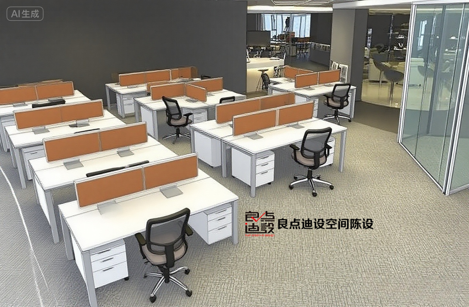先嘮嘮布局——開放式工位配橙色屏風,既保留了團隊嘮嗑的熱鬧勁兒,又給每個人留了私密小角落。咱打工人干活時想摸魚刷手機?不存在的!屏風一擋,***路過都以為你在“深度思考”(bushi)。再看重工位之間的過道,寬寬敞敞的,抱個文件箱都能健步如飛,再也不用上演“辦公室碰碰車”啦~