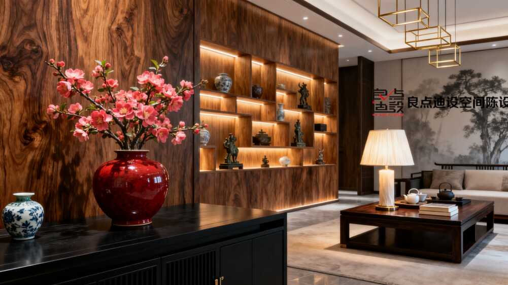 另一側(cè)整墻博古架太會(huì)擺了!瓷器、茶罐、小擺件高低錯(cuò)落。暖光燈一打,每件器物都像會(huì)講故事。記住擺七分滿留三分白,透氣感才是關(guān)鍵。