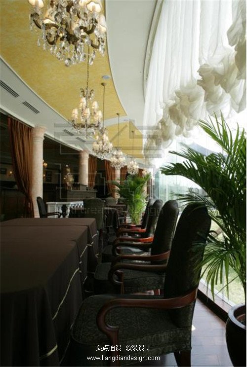 西山美廬會所,多種款式高低搭配的美式皮制釘扣沙發(fā),給人們帶來一個舒適的放松空間,大氣的宴會西餐廳與之相對,精致的水晶燈顯現出皇家高雅氣質,整個空間如氣勢磅礴的交響樂般讓人流連。