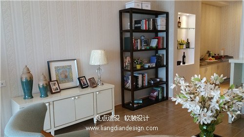 空間軟裝色彩:深胡桃木色 乳白色、淡藍(lán)色