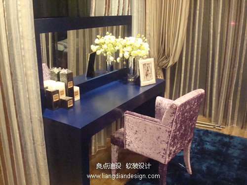 香城壹號(hào)LOFT本身是一個(gè)挑高空間,樓上樓下雙層生活空間,大的落地窗納入明媚陽(yáng)光,樓下起居室與餐廳連接一體,舒適自然,給居住者提供方便舒適的使用環(huán)境,在這樣的空間中我們運(yùn)用大膽時(shí)尚的設(shè)計(jì)風(fēng)格,餐廳區(qū)域是挑高的空間,窗簾形式也采用簡(jiǎn)潔的彩虹卷簾百葉的形式。抽象化的吊燈在空間給人帶來(lái)隨意自然的氛圍?,F(xiàn)代感皮面沙發(fā)和漸變拼花皮地毯都給人帶來(lái)時(shí)尚的氣息,二樓樓梯間的照片墻有歡迎客人與展示主人愛(ài)好與生活方式的作用,一個(gè)小桌配一個(gè)復(fù)古的皮沙發(fā),不論是暖暖的下午還是深夜都是一個(gè)品茶看書(shū)的好地方,貴族藍(lán)的床品和化妝臺(tái)搭配煙灰色紗幔,為臥室營(yíng)造出典雅浪漫的氣息,LOFT風(fēng)格創(chuàng)意裝飾就這樣被打造出來(lái)。