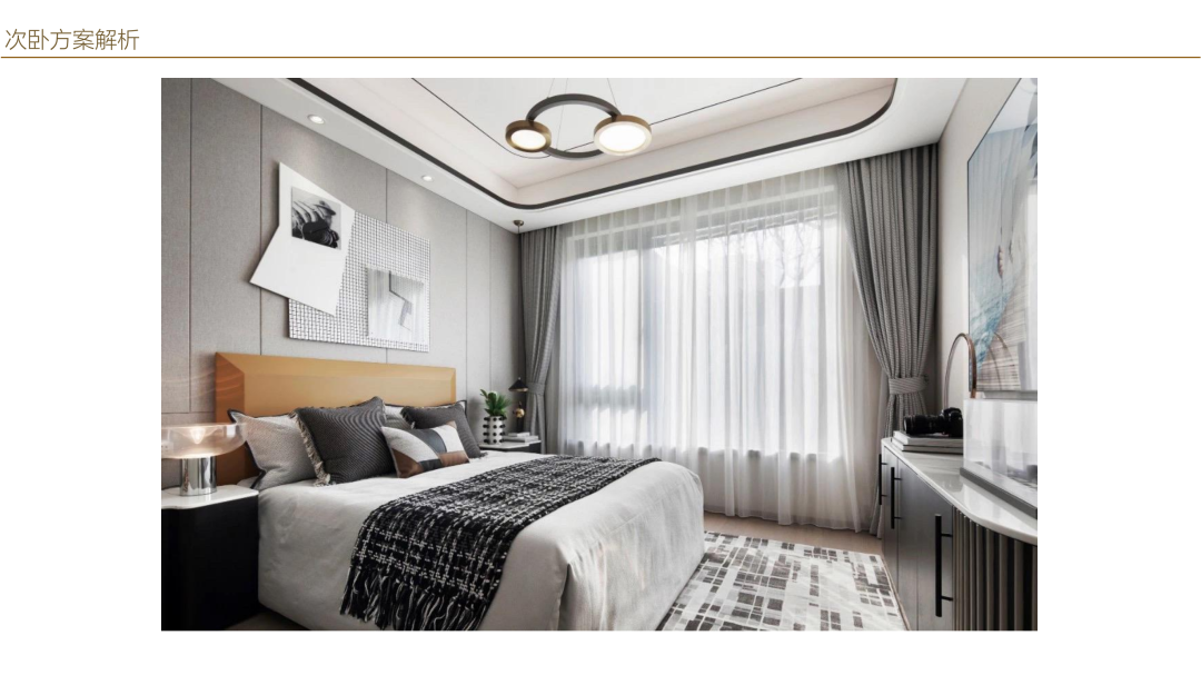 作為套房,將睡眠空間+衣帽收納空間+洗漱空間為一體,床尾有需要的話,可以增加抽屜柜收納跟梳妝臺(tái),兩個(gè)南次臥獨(dú)立的大衣柜能夠滿足客房的日常衣物收納。北次臥
