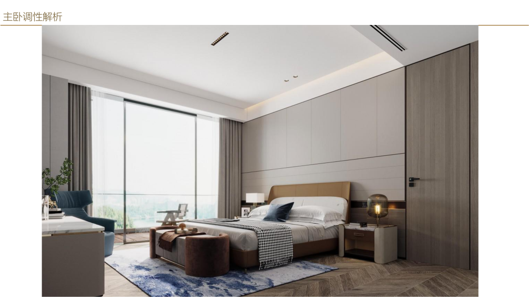 主臥室 的區(qū)域由幾大功能區(qū)組成,一面墻體將寢區(qū)、更衣室區(qū)分開(kāi),墻體是用咖色材質(zhì)進(jìn)行隔斷,柔軟的材質(zhì)充分體現(xiàn)著臥室空間的舒適屬性。