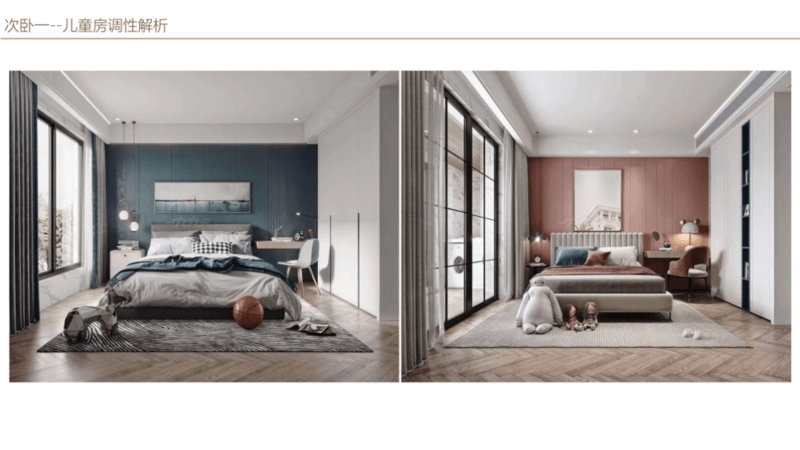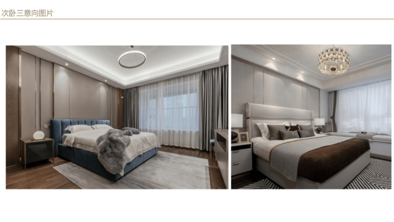 主臥做套房設計,作為業(yè)主的私人活動空間,起居打扮在這里都能完成。另外三間臥室作為兒童房、長輩房和客房,房間以簡約為主,按照房間定性進行規(guī)劃。