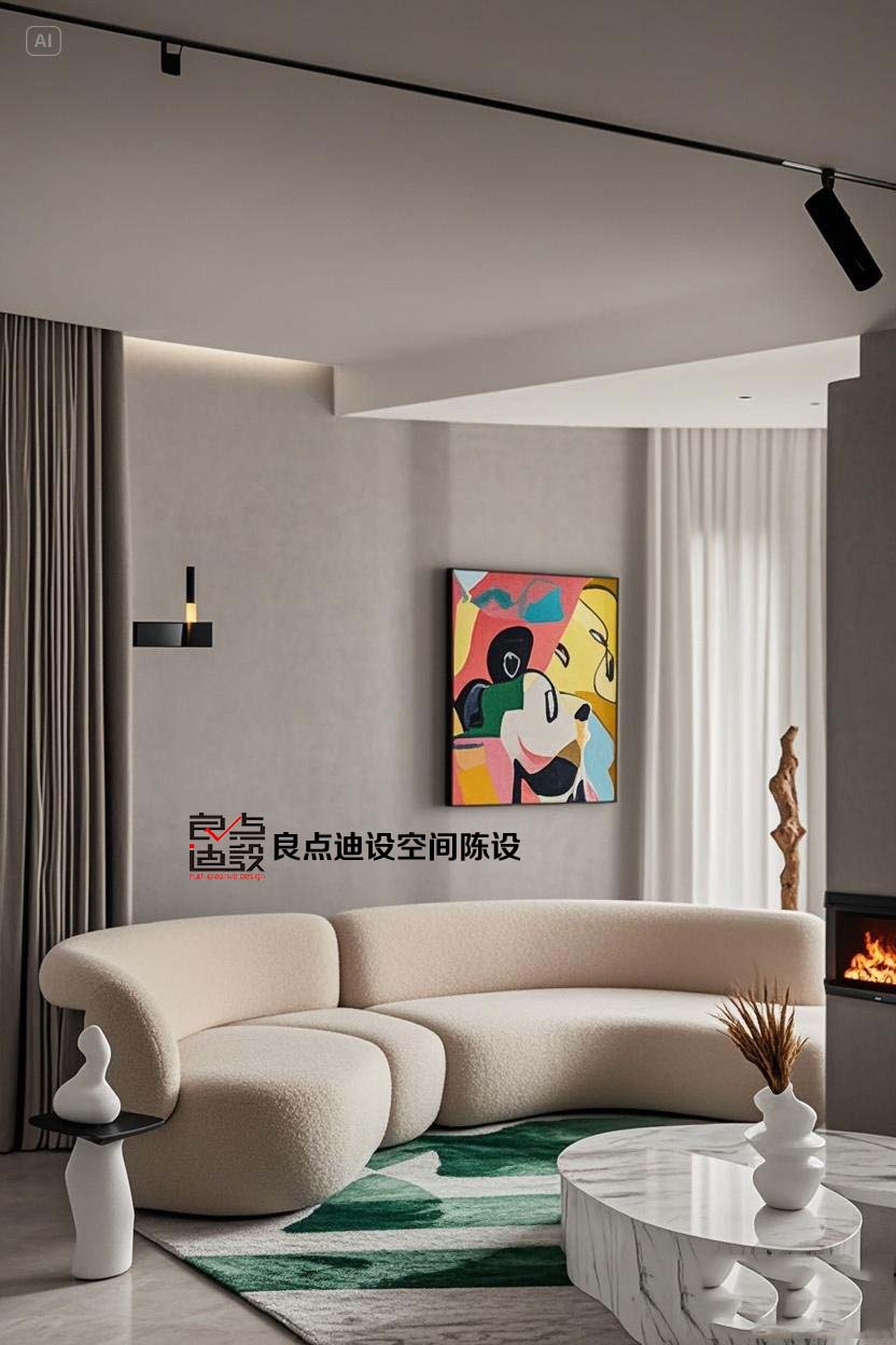灰白客廳美到炸!弧形沙發(fā)+綠意地毯,這才是簡約天花板!